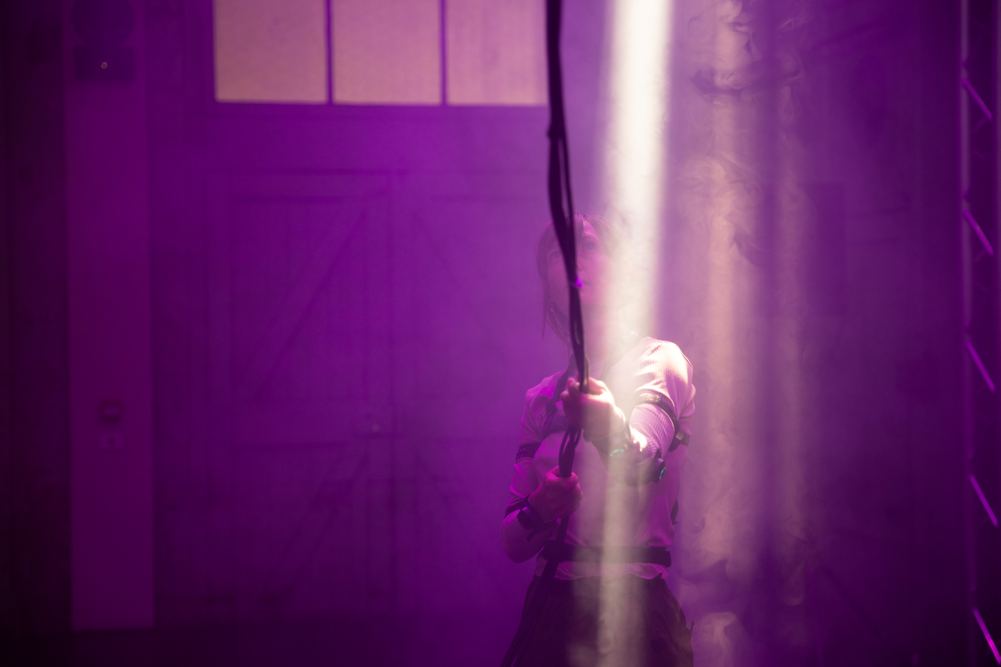 In this development, we focused on working with sound and light, merging the actual and virtual. We used the VIVE tracker to enable real-time movement of the screen in virtual space, acting like a portal. Using DMX we linked the actual lighting with the virtual lighting and enabled sound to trigger lights.